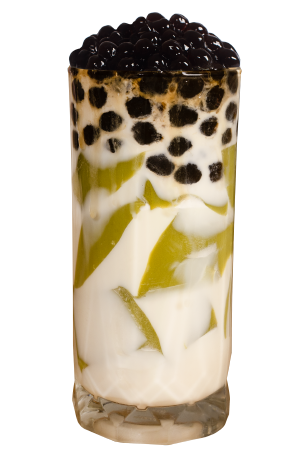 抹茶凍和珍珠雙份料的滿足,注入濃郁鮮奶,咀嚼控的最愛。